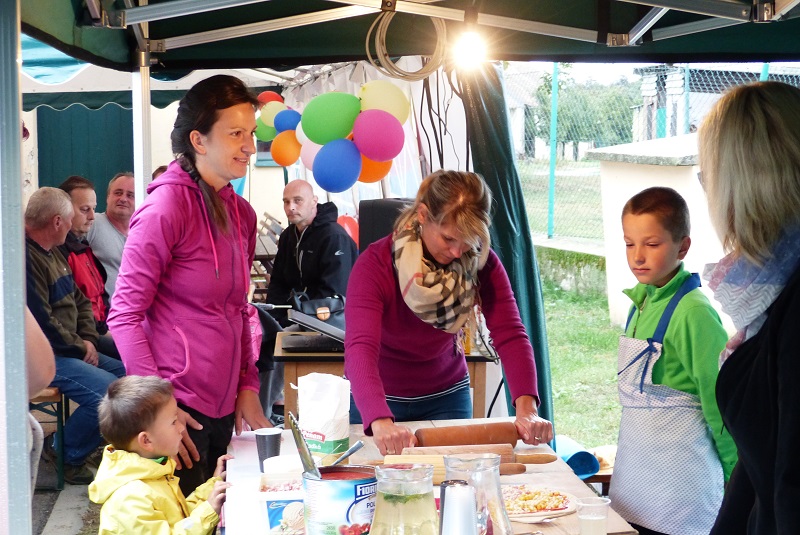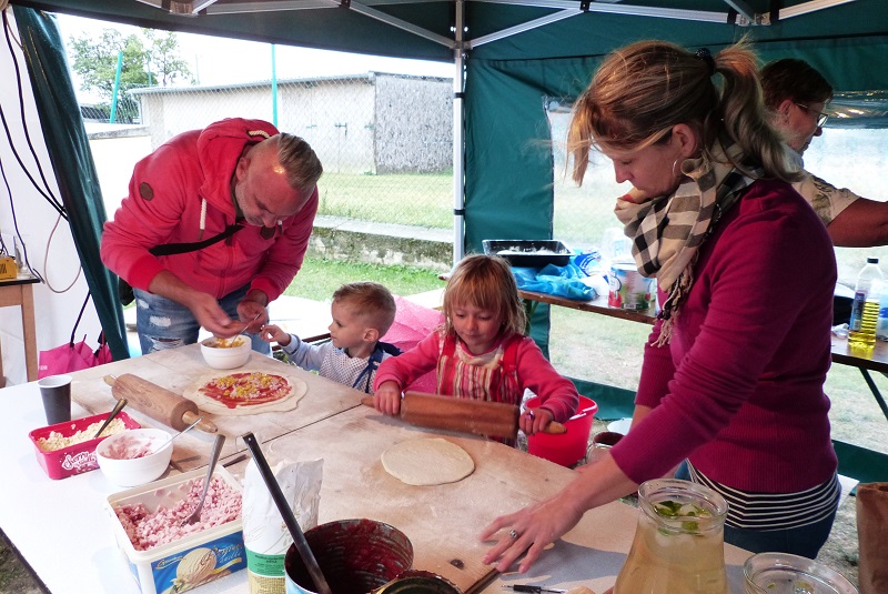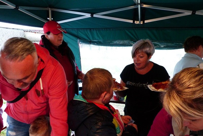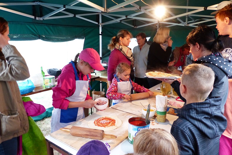 Rozloučení s prázdninami tak jsme nazvali letošní Pizza párty. Počasí nám vůbec nepřálo, pršelo a pršelo. Naštěstí jsme měli k dispozici obecní párty stan pro posezení. Mile nás překvapilo, že účast dětí s rodiči byla velká a znovu jsem upekli 130 kusu pizz. Děti si pizzu samy vyválely, nazdobily a s chutí snědly.
